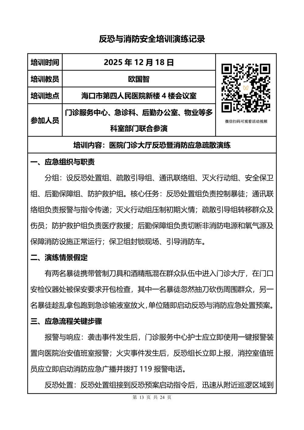 消防安全培训演练记录